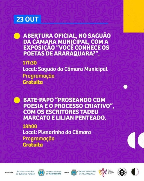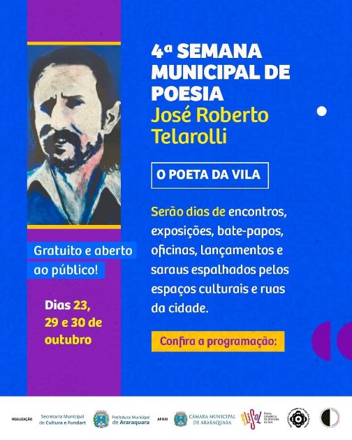 A atividade faz parte da programação da “Semana Municipal de Poesia – José Roberto Tellaroli, o poeta da Vila”, instituída pela Lei 10.452, de 2022, e comemorada anualmente na última semana de outubro.