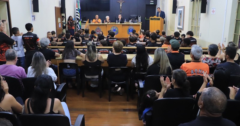 Em Sessão Solene realizada na Câmara na noite desta quinta (4), o Colorado Futebol Clube recebeu Diploma de Reconhecimento Público. Dezenas de pessoas, entre atletas, ex-atletas, pais e responsáveis e entusiastas lotaram o Plenário para o evento.