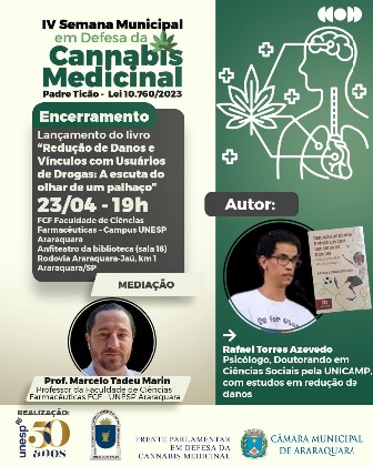 O evento é uma realização da Frente Parlamentar em Defesa da Cannabis Medicinal da Câmara Municipal de Araraquara em parceira com a Faculdade de Ciências Farmacêuticas (FCF) da Unesp Araraquara.