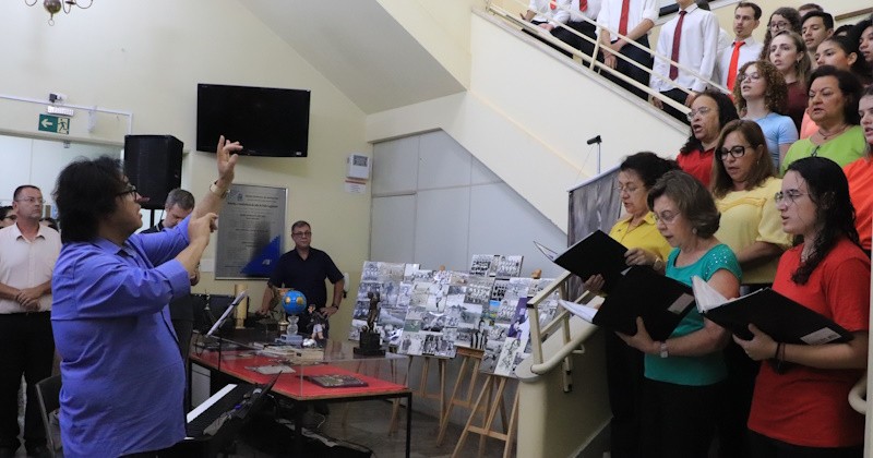 A Câmara Municipal recebeu, na noite desta segunda-feira (8), uma apresentação natalina do Coral da Uniara. Realizado no saguão da Casa de Leis, a abertura do evento foi anunciada pelo presidente da Câmara, Rafael de Angeli (Republicanos).
