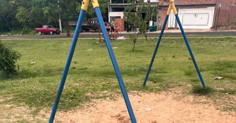 Segundo Clemente, os brinquedos do parquinho apresentam desgastes e danos que podem oferecer riscos às crianças, enquanto os equipamentos da academia ao ar livre mostram sinais de falta de manutenção, comprometendo a prática segura de atividades físicas.