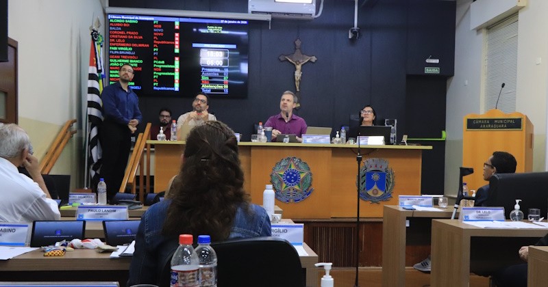 • De autoria dos vereadores Alcindo Sabino e Aluisio Boi, o Requerimento nº 140/2026 solicita a criação de Câmara Técnica para estudar, analisar e propor medidas para a viabilização e implantação do piso salarial dos Agentes de Educação no Município de Araraquara, instituído pela Lei nº 15.326, de 2026.