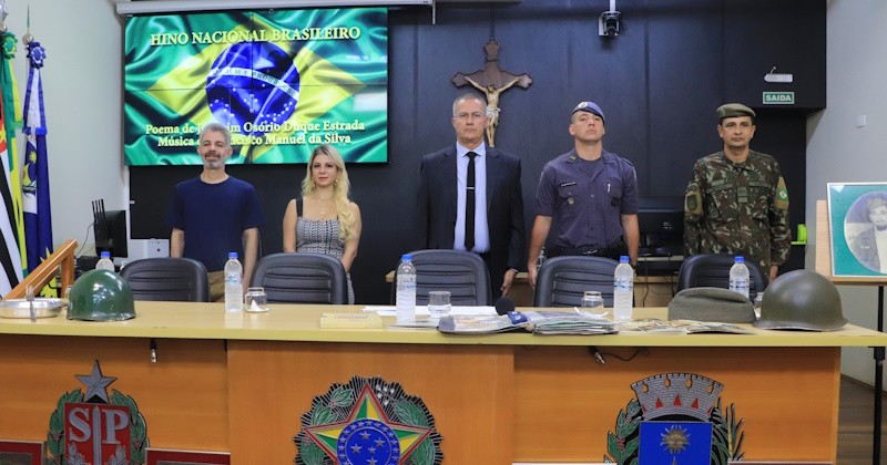 Além do parlamentar, compuseram a mesa os netos de José Marino, Gabriela Marino Schiavon Arnosti Neves e Daniel Marino Schiavon, o chefe de instrução do Tiro de Guerra 02002 de Araraquara, subtenente João Dias Esteves, e o 2º tenente PM Daniel Placo Ferreira Cunha, representando o comandante do 13º Batalhão de Polícia Militar do interior, tenente Richard Souza.