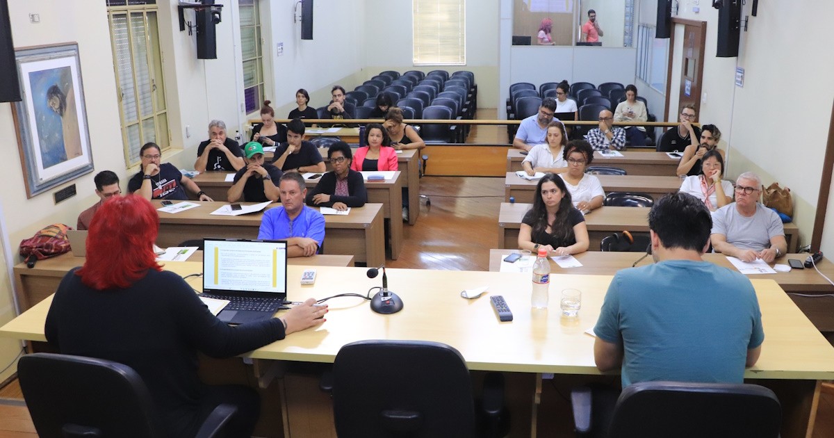 O conteúdo da atividade foi apresentado pela chefe da Divisão Educativa de Cultura da Secretaria Municipal de Cultura, Carolina Alves Guimarães, que trabalha desde 2017 com elaboração de editais na secretaria e, desde 2018, integra bancas de Comissão de Seleção e Avaliação dos projetos do município.
